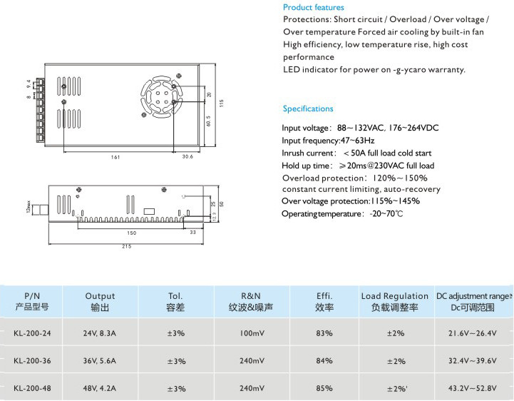 過電壓保護/過電流保護/過溫保護內(nèi)置風扇冷卻